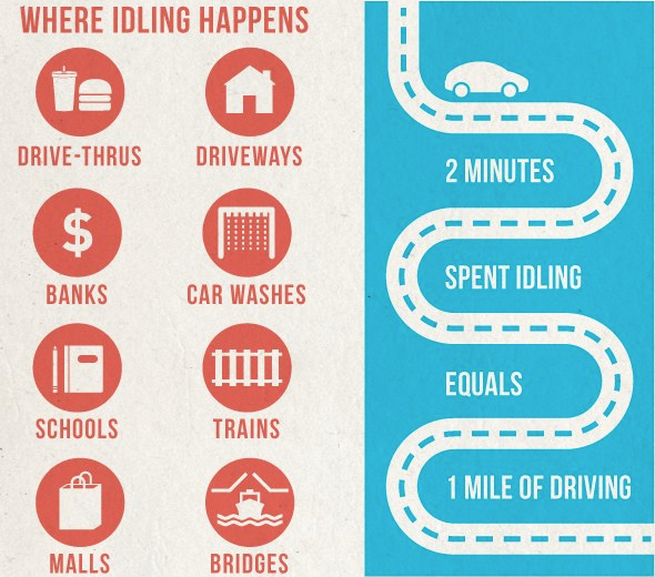 According to the “Anti-Idling Primer,” 5 minutes of idling per day for a year burns 10-20 gallons of gas and emits 220-440 lbs of Carbon Dioxide annually, depending on the size of your engine. By recognizing the inefficiency of idling, you can save yourself a significant amount of gas and money while reducing your negative impact on the environment.