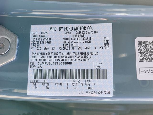 - Front Tire Size: P255/60VR19