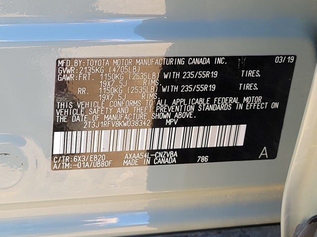 - Front Tire Size: P235/55HR19