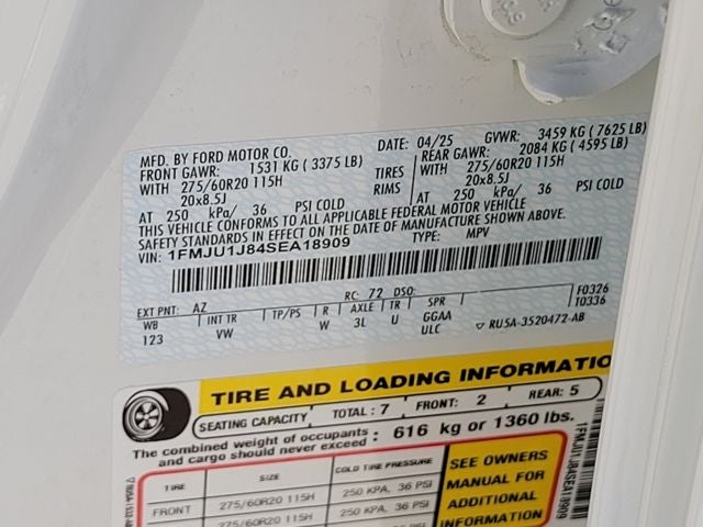 We are offering this 2025 Ford Expedition, in White Metallic and Space Gray Premium Synthetic, 110V/400W AC Power Outlet, 26mm Engine Radiator, 2nd Row Power-Folding Captain's Chairs, 360-Degree Zone Lighting, 3rd Row Flexible Seating, 3rd Row Vinyl Seats, 4-Door Intelligent Access (Lock/Unlock), ActiveX Front Heated Captain's Chairs, BlueCruise Equipped, Equipment Group 202A High Package, Flex Powered Console, Ford Split Gate, Front Side Laminated Glass, Heated Steering Wheel, Heavy-Duty Trailer Tow, Integrated Trailer Brake Control, Memory Driver Seat, Navigation System, Power Panoramic Vista Roof w/Power Sunshade, Power Tilt/Telescopic Steering Wheel w/Memory, Power-Folding Sideview Mirrors w/Autofold, Rain Sensing Wipers, SecuriCode Keyless Entry Pad, Universal Garage Door Opener, USB Ports, Wheels: 20 Carbonized Gray Bright Machined Aluminum, Wireless Charging Pad. CARFAX One-Owner. Certified. EcoBoost 3.5L V6 GTDi DOHC 24V Twin Turbocharged 10-Speed Automatic 4WD